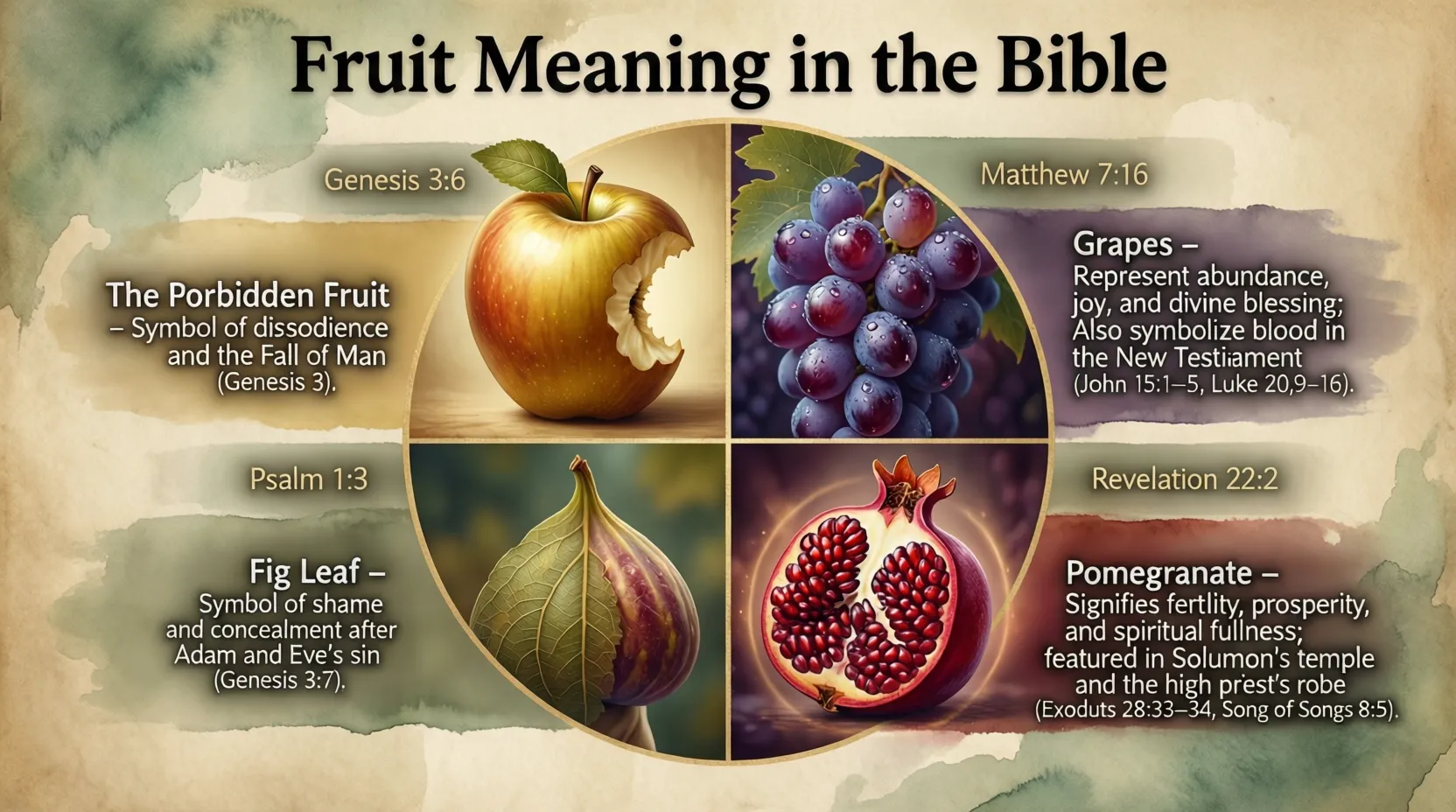 In the Bible, fruit is used to describe both spiritual growth and the results of our faith in action. From the Fruit of the Spirit to teachings about good and bad fruit, God uses this symbol to help us examine our hearts and lives.